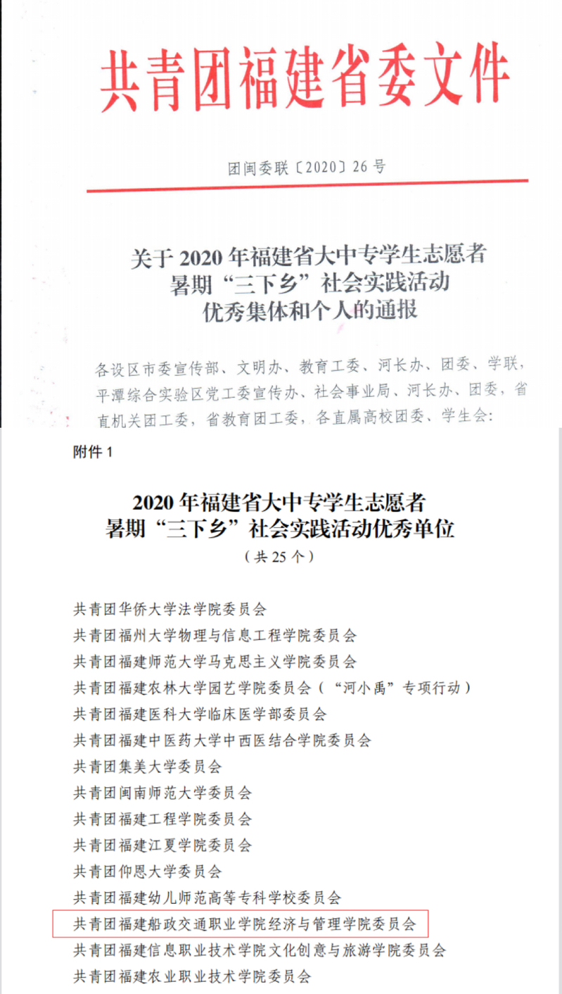 2020年福建省大中專學(xué)生志愿者暑期“三下鄉(xiāng)”社會(huì)實(shí)踐活動(dòng)優(yōu)秀單位