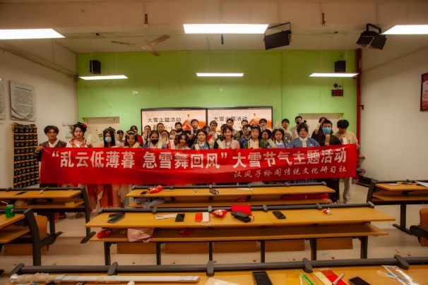 大雪,是二十四節(jié)氣中的第二十一個節(jié)氣,時間是公歷每年的127日或8日,民間有“小雪腌菜,大雪腌肉”的風(fēng)俗。在中國人的生活中,雪不僅代表了“瑞雪兆豐年”,還有“風(fēng)起,雪飛炎海變清涼”的風(fēng)雅,更有“北國風(fēng)光,千里冰封,萬里雪飄”的豪邁!為弘揚(yáng)節(jié)氣文化、漢服文化,社團(tuán)開展大雪節(jié)氣主題活動,同學(xué)們通過“雪之飛花令”、投壺和漢服走秀等形式,讓更多的青年學(xué)生充分感受傳統(tǒng)文化的魅力,增強(qiáng)學(xué)生們的文化自信。