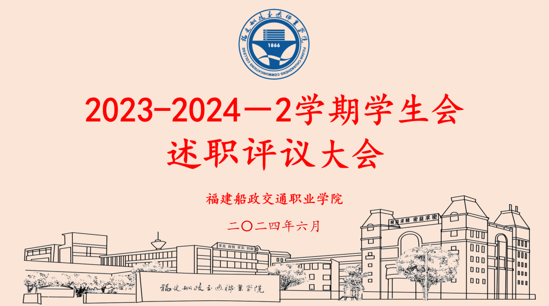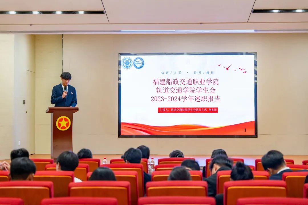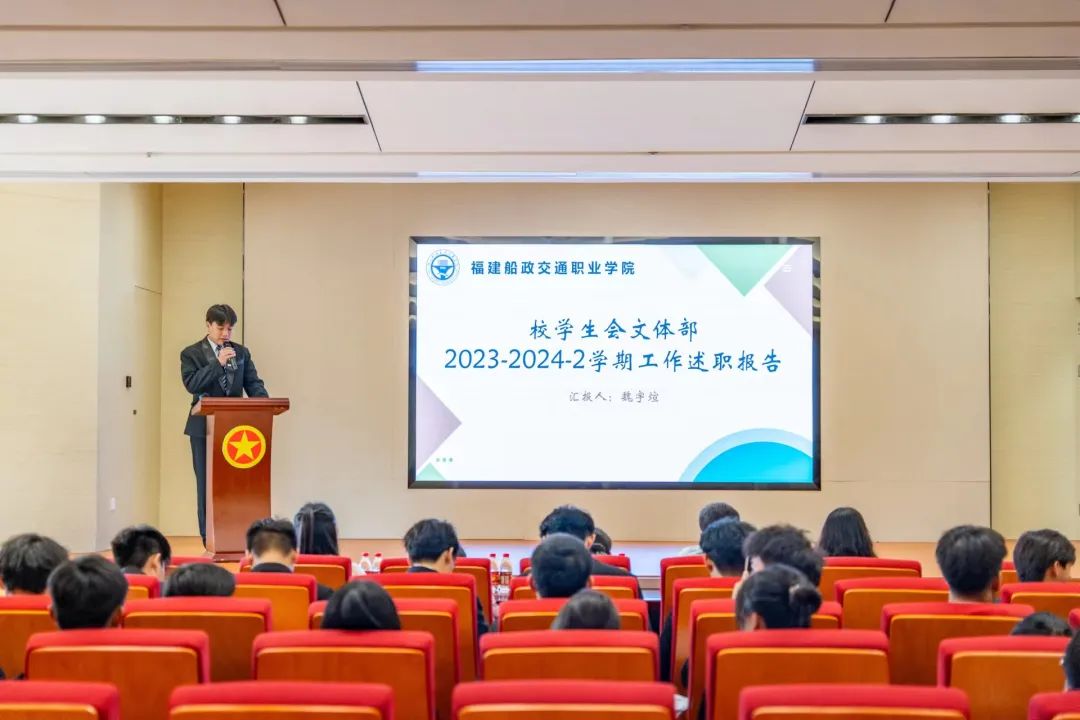 為加強我校學(xué)生會組織建設(shè),全面深化學(xué)生會組織改革,不斷完善考核制度,強化學(xué)生服務(wù)體系,616日下午福建船政交通職業(yè)學(xué)院2023-2024-2學(xué)期學(xué)生會述職評議大會在福船園藝新樓304報告廳舉行 。校團委書記陳慧、副書記梁晶、校黨委學(xué)生工作部思政科科長張瑞青出席會議,會議由第八屆校學(xué)生會執(zhí)行主席潘懿晟同學(xué)主持。