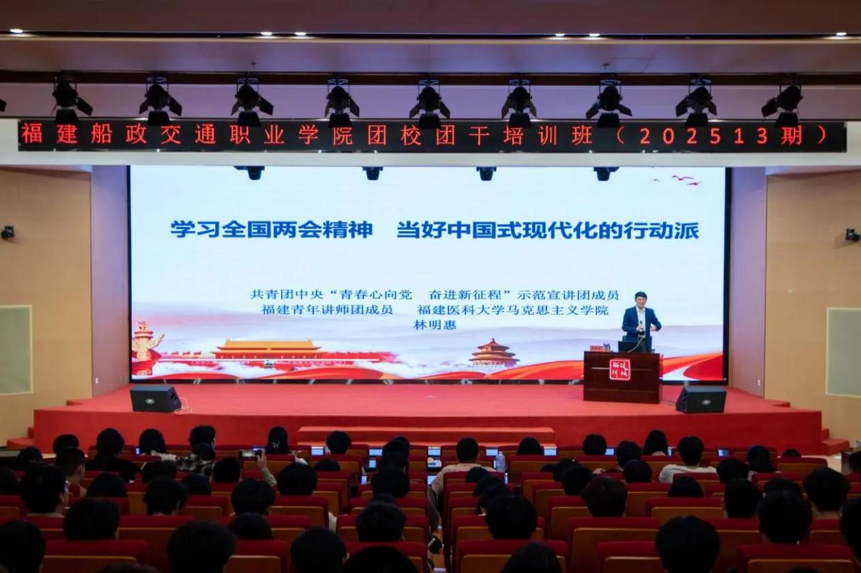49日,共青團(tuán)中央“青春心向黨 ,奮進(jìn)新征程”示范宣講團(tuán)成員、福建青年講師團(tuán)成員、福建醫(yī)科大學(xué)馬克思主義學(xué)院副教授林明惠老師受邀為我院202513期福建船政職業(yè)學(xué)院團(tuán)校團(tuán)干培訓(xùn)班作專題講座-《學(xué)習(xí)全國(guó)兩會(huì)精神,當(dāng)好中國(guó)式現(xiàn)代化的行動(dòng)派》,202513期團(tuán)校團(tuán)干培訓(xùn)班全體成員參與。