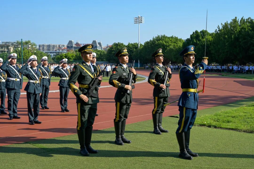 當激昂的國歌聲響徹田徑場,五星紅旗迎著朝陽緩緩舒展、升至頂端,這場承載期待的新生開學(xué)典禮,就此莊重啟幕。