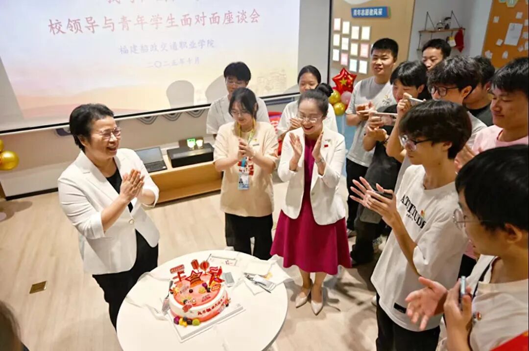 在青年之家,同學們圍繞專業(yè)發(fā)展、擇業(yè)方向、個人規(guī)劃及校園生活等話題踴躍發(fā)言;學院黨委副書記張輝與學院團委書記陳慧認真傾聽,對同學們提出的困惑逐一進行詳細解答并開展深入交流。座談會上,張輝副書記與師生們共同為新中國成立76周年慶生,師生們高聲祝?!白鎳湛鞓贰?,現(xiàn)場氣氛高漲,溫馨的一幕為座談會畫上了圓滿的句號。
