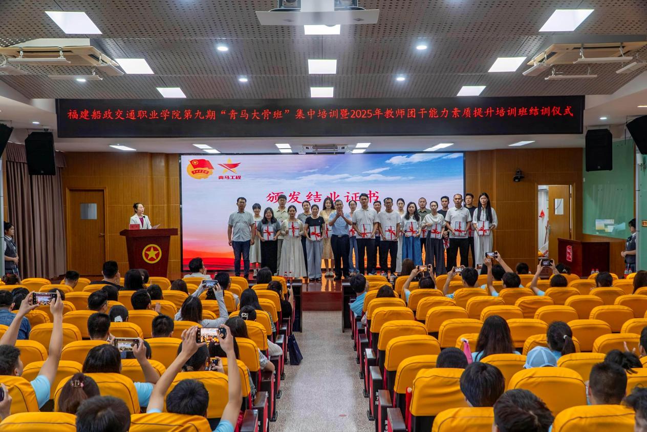 2025725上午,福建船政交通職業(yè)學(xué)院2025年教師團(tuán)干培訓(xùn)班舉行結(jié)業(yè)儀式。結(jié)業(yè)儀式由校團(tuán)委書記陳慧主持。教師團(tuán)干代表泉州職業(yè)技術(shù)大學(xué)團(tuán)委許雪琳暢談五天來的所學(xué)所感,直言收獲頗豐,結(jié)合自身工作實(shí)際分享了實(shí)踐思考,真摯的話語引發(fā)了在場學(xué)員的強(qiáng)烈共鳴。最后福建省團(tuán)校副校長李華軍為學(xué)員們頒發(fā)了結(jié)業(yè)證書。