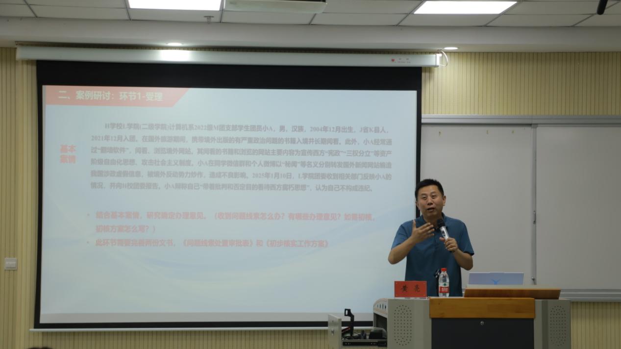 最后一講,是中央團(tuán)校黃亮老師帶來的《團(tuán)紀(jì)執(zhí)行案例教學(xué)》。課程通過聚焦團(tuán)紀(jì)執(zhí)行核心,明確縣級及以上團(tuán)的委員會(huì)組織部門等執(zhí)紀(jì)權(quán)限,詳解從受理到處分執(zhí)行的5個(gè)關(guān)鍵步驟,全程強(qiáng)調(diào)集體研究的重要性;并通過現(xiàn)場模擬案例,切實(shí)提升教師團(tuán)干依規(guī)執(zhí)紀(jì)能力,為團(tuán)務(wù)工作開展和青年學(xué)生行為規(guī)范提供清晰遵循。
