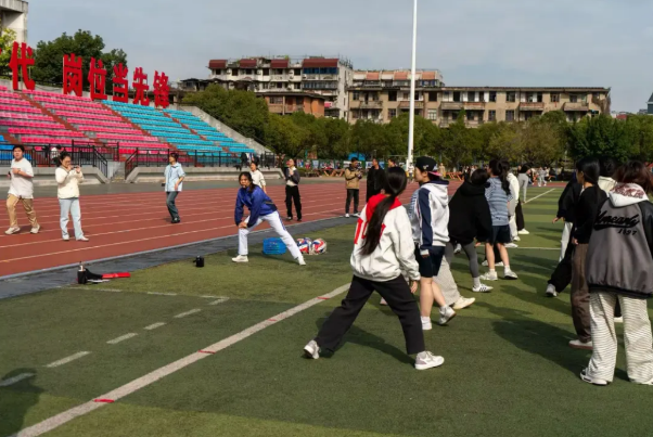 移步青春田徑場(chǎng),活動(dòng)進(jìn)入最“燃”環(huán)節(jié)!黃芊芊化身臨時(shí)教練,教授同學(xué)們科學(xué)的熱身動(dòng)作,細(xì)致講解動(dòng)作要領(lǐng)。同學(xué)們緊跟冠軍的節(jié)奏,親身感受體育的活力與嚴(yán)謹(jǐn)。