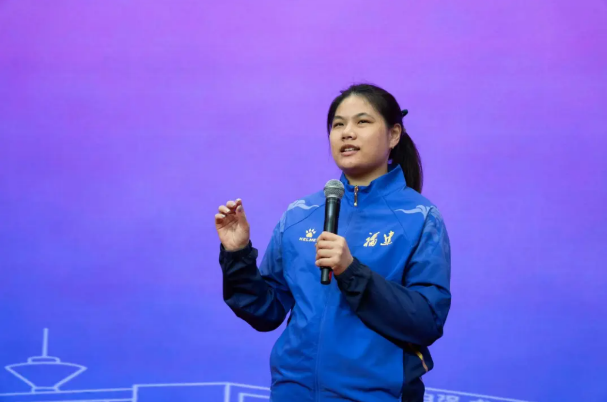 活動(dòng)在同學(xué)們熱烈的掌聲中拉開帷幕。黃芊芊以“拼搏見證夢(mèng)想”為主題,娓娓道來自己從晉江少體校起步,歷經(jīng)市隊(duì)、省隊(duì),直至入選國(guó)家隊(duì)的成長(zhǎng)軌跡。面對(duì)傷病與低谷,她坦言“再堅(jiān)持一下”的信念是關(guān)鍵;談及天賦、努力與機(jī)遇,她真誠(chéng)分享:“天賦是起點(diǎn),努力是過程,而機(jī)遇,永遠(yuǎn)青睞有準(zhǔn)備的人。”樸實(shí)話語中蘊(yùn)含的力量,深深觸動(dòng)了在場(chǎng)每一位船政學(xué)子。