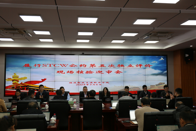 3月6日,我校迎接履行STCW公約第五次獨立評價工作組現場核驗工作。履行STCW公約第五次獨立評價工作組9名成員、福建海事局和福州海事局相關人員,院長陳錦輝、副院長陳艷紅,學校13個船員教育和培訓質量管理體系受控部門部門長及質量管理員參加迎審會,質量管理中心主任蔣玲主持會議。
