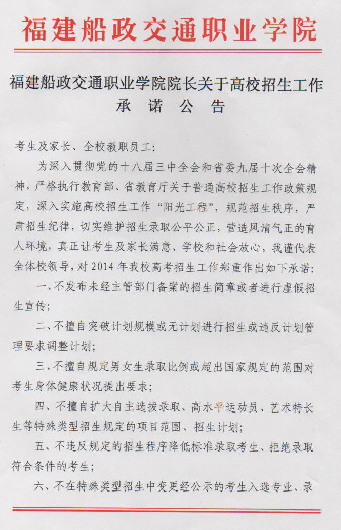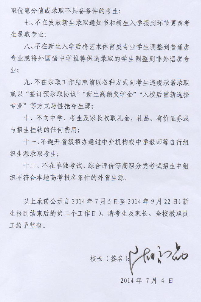 校長關(guān)于高校招生工作承諾公告