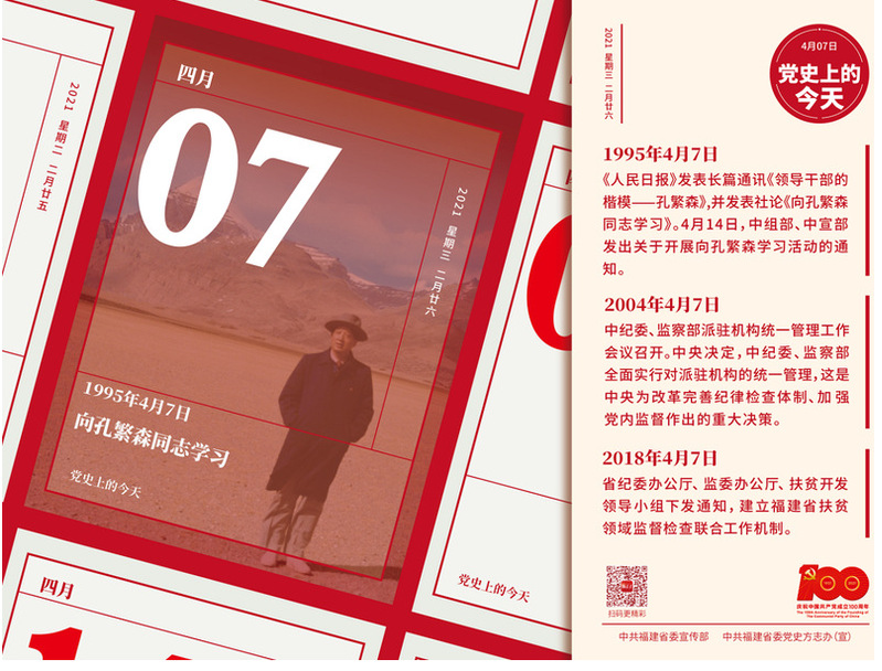 1995年4月7日,《人民日報》發(fā)表長篇通訊《領(lǐng)導(dǎo)干部的楷?!追鄙?,并發(fā)表題為《向孔繁森同志學(xué)習(xí)》的社論。4月14日,中共中央組織部、中共中央宣傳部發(fā)出關(guān)于開展向孔繁森學(xué)習(xí)活動的通知。