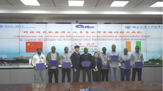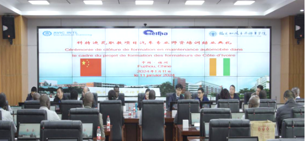 近日,我院舉辦科特迪瓦職教項目汽車維修專業(yè)師資培訓(xùn)結(jié)業(yè)典禮??铺氐贤呗毥添椖慷綄W(xué)科菲·古阿古·荷內(nèi),學(xué)院黨委委員、副院長陳艷紅,中航國際成套設(shè)備有限公司業(yè)務(wù)四部經(jīng)理助理張航出席典禮,學(xué)院教務(wù)處、科技處、對外交流中心及汽車學(xué)院等部門負(fù)責(zé)人參加典禮。
